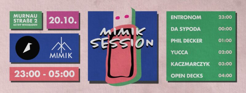 Mimik Session in der Kreativfabrik. Diesmal brandneu im Keller der Krea: die erste lang ersehnte Mimik Session! Es gibt wie immer ein buntes Lineup und natürlich neue Kunst. Und am Ende des Abends gibt es ab 04:00 Uhr open Decks. Um 23 Uhr.