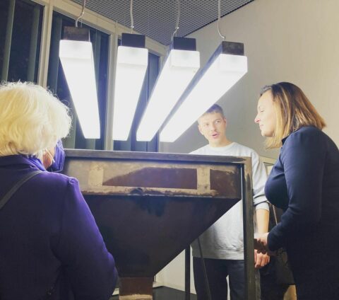 sensor präsentiert: Künstlergespräch „The Tide is High“ im Kunsthaus. Die Stipendiatinnen der Hessischen Kulturstiftung Haleh Redjaian und Yvonne Roeb und der Stipendiat Max Brück (Foto, bei der Ausstellungseröffnung), sprechen mit der Berliner Kunsthistorikerin Julia Rosenbaum über ihre Reisen, ihre künstlerische Praxis und ihre Arbeiten in der Ausstellung. Um 15 Uhr.