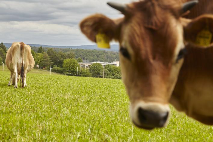 „Nach fünf Zentimetern kommt direkt der Ölschiefer“, berichtet Doris Lundgren, die seit dreieinhalb Jahren hier lebt. Intensiv haben man daher an der Bodenvorbereitung gearbeitet, alles ausgebaggert und mit Erde und Kuhmist aufgefüllt. Joghurt, Butter und Ghee, die man aus der Milch der Happy Cows zubereite, werden für die Zeremonien im Hindu-Tempel des Ashram benötigt. Nur selten lande davon etwas auf den Tellern der Bewohnerinnen und Bewohner. Auch die Blumen, die hier gezogen werden, werden vor allem für zeremonielle Zwecke benötigt.