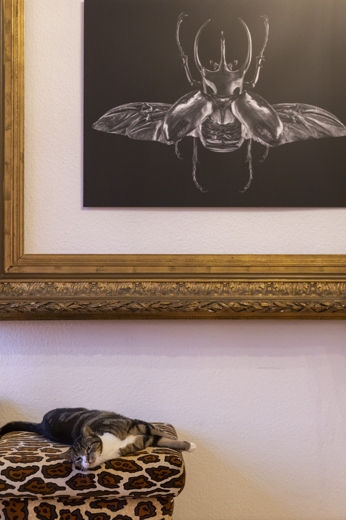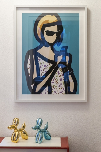 Besonders die Pop Art hat es beiden angetan. Wieso? „Weil es clean und unkompliziert ist, weil es Spaß und gute Laune macht“, sagt Daniela. Angefangen habe ihre Sammelleidenschaft, als sie in einem Online-Auktionshaus zwei Frauenporträts eines wenig bekannten Malers für relativ kleines Geld entdeckte. „Mitten im Studium war das schon schwierig, aber ich musste sie einfach haben”, erzählt sie. Die erste Arbeit, die die beiden zusammen aussuchten, stammt von Mel Ramos, über Jahre sind noch weitere hinzugekommen. Der 2018 in Kalifornien verstorbene Mel Ramos galt, wie auch Andy Warhol, als bedeutender Vertreter der Pop Art.