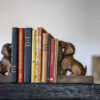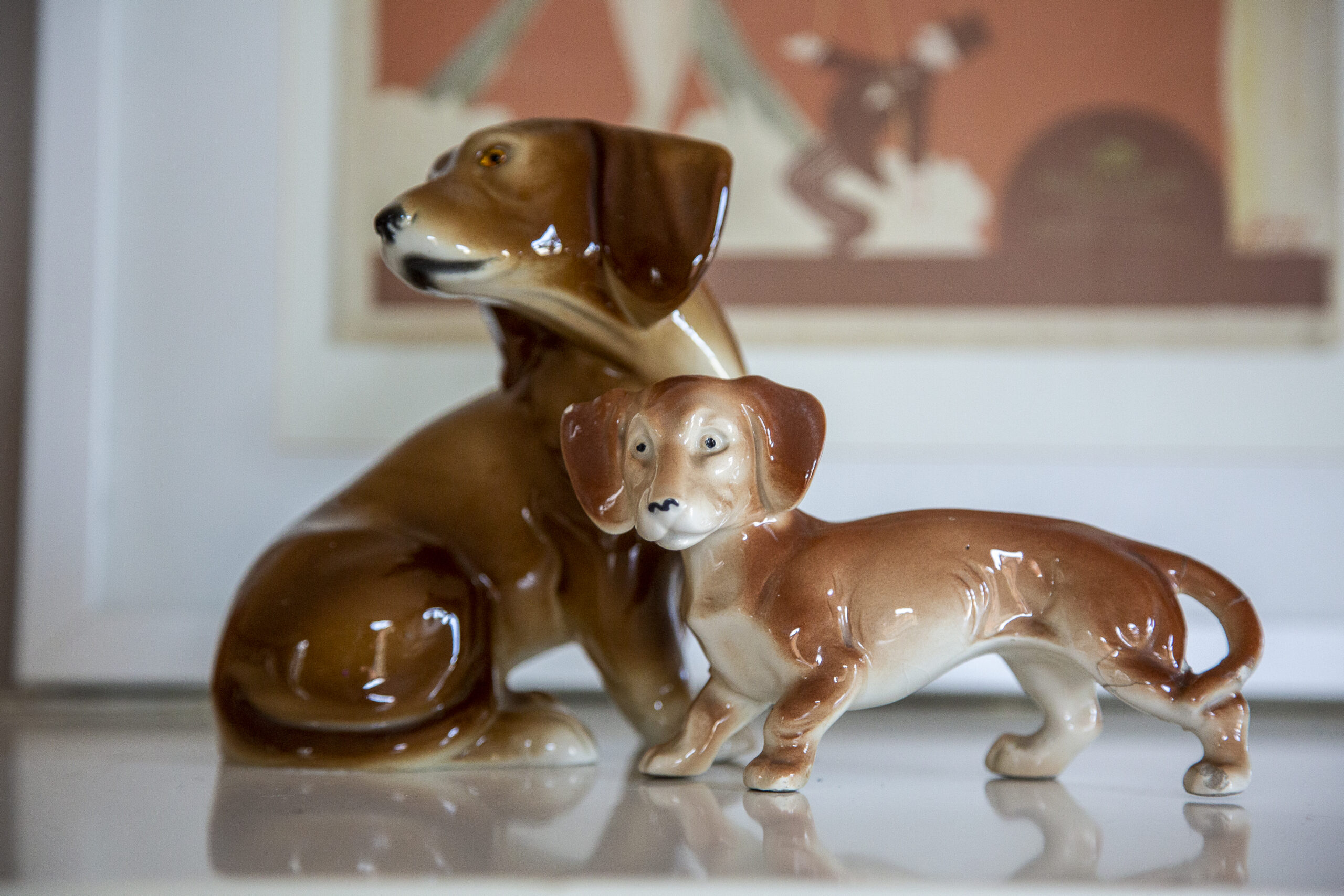 Gelesen wird gern in dem Haus. In der Küche liegt ein Band mit japanischen Gedichten von Toyotama Tsuno, die Leu gerade liest. Im zweiten Stock, wo Evis Arbeitszimmer und die Schlafräume sind, schweben einige Bändchen auf einem Fachwerksbalken – Tolstois „Auferstehung“, Cocteaus „Kinder der Nacht“, Lenotres „Wenn Steine reden“, Klabunds „Piotr“ und einige weitere Bändchen von „Insel“, links und rechts gestützt von Holzbuchstützen in Dackelform. Die Räume sind schön eklektisch eingerichtet. Viele Teile der Einrichtung sind einfach Geschenke von Freunden, erzählt Evi.