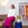 „Viele Kundinnen kommen immer wieder zu mir“, sagt Renner. „Sie wissen, was sie wollen, verlassen sich aber bei der Interpretation ihrer Vorstellungen auf mich.“ Die Designerin arbeitet beispielsweise gerne mit abnehmbaren Krägen, sodass sich einzelne Kleidungsstücke zu unterschiedlichen Anlässen tragen und kombinieren lassen. Ihre Materialien bestellt sie in Katalogen, vieles findet sie aber auch in kleinen Geschäften auf Reisen. „Zweimal im Jahr muss ich nach Mailand, um den internationalen Modeflair nach Wiesbaden zu holen“, sagt sie lachend. Ihre Modetipps für den Frühling: Colour-Blocking, 70er-Vibes, Farben wie Knallgrün, Pink und Gelb sowie gerade Schnitte, zum Beispiel als Marlenehose.