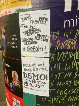 Wie wiederholt berichtet, schlagen soziale Einrichtungen, der Kulturbeirat und der AK Stadtkultur Alarm angesichts der im Raum stehenden Kürzungen – und machen gemeinsame Sache bei der großen Demo im Schulterschluss am 28. September um 15 Uhr vor dem Rathaus.