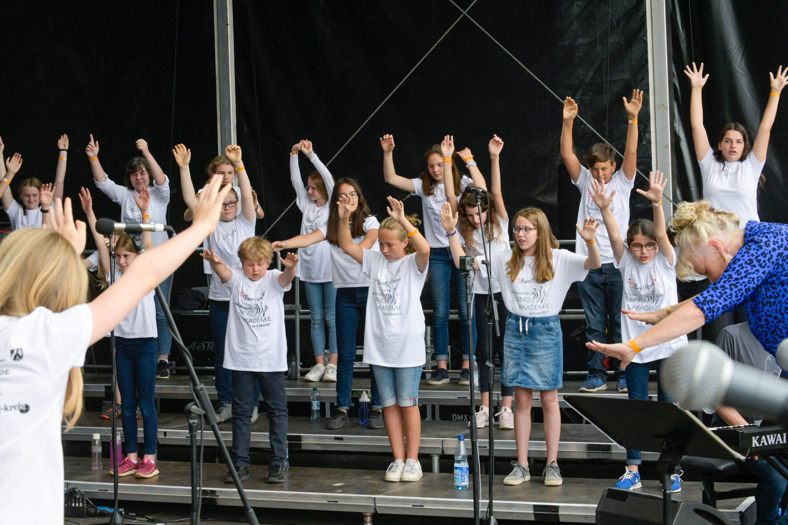 Dass sich dieser Aufwand gelohnt hat und die Veranstaltung für viele Kinder und ihre Eltern ein Lichtblick und motivierendes Ziel während der Pandemie war, haben auch Sophia und Gülpembe, Schülerinnen der Brüder-Grimm-Schule in Mainz-Kostheim, berichtet. Geprobt haben „sie wöchentlich, und das gerne“. Zusammen mit ihren Lehrer*innen und Familien eröffneten die Sänger*innen das Konzert mit der „Ode an die Freude“ unter strahlendem Sonnenhimmel, nachdem die ursprünglich geplante Aufführung nach anhaltender Gewitterwarnung abgesagt werden musste und das für größere Enttäuschung gesorgt hatte. Dafür war die Freude diesmal doppelt so groß, auch bei den Organisatoren.