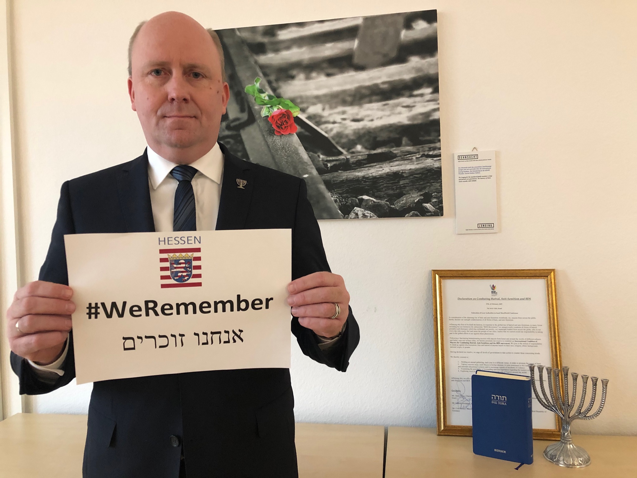Der Jüdische Weltkongress (WJC) hat eine weltweite Aktion des Erinnerns gestartet. Unter dem Motto „We remember“ ruft der WJC Menschen überall auf der Welt aus allen Religionen dazu auf, an den millionenfachen Massenmord an den rund 6 Millionen Juden in Europa zur Zeit des Nationalsozialismus zu erinnern. Wer seine Unterstützung für diese Aktion zum Ausdruck bringen will, ist aufgerufen, ein Selfie mit der Botschaft „We remember“ ins Netz zu stellen. Der hessische Antisemitismus-Beauftragte Uwe Becker nimmt an dieser Aktion teil und ruft die Menschen in Hessen, Unternehmen, Vereine und Verbände dazu auf, Teil dieser internationalen Aktion gegen das Vergessen zu werden und sich damit gegen den Antisemitismus zu stellen.
