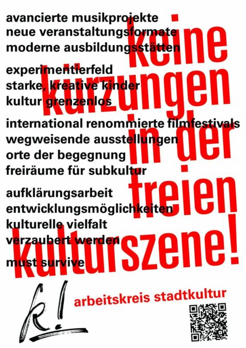 Mit öffentlichen Erklärungen hatten sich, wie berichtet, bereits der Kulturbeirat – hier nachzulesen – und der AK Stadtkultur – siehe hier – öffentlich zu Wort gemeldet. In den sozialen Medien und bei Veranstaltungen nutzen Betroffene und Involvierte jede Gelegenheit, auf die bedrohliche Lage aufmerksam zu machen.