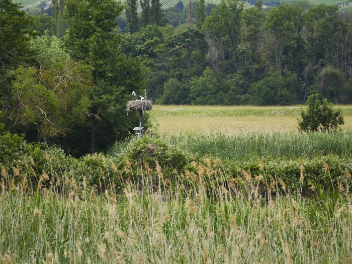 Neu sei auch, dass man rund um das Gelände des Wasserwerks Schierstein Jungtiere in verschiedenen Größen beobachten könne. „Als Ende April die letzten kamen, hatten andere schon Jungstörche“, verdeutlicht der 63-jährige. In Schierstein geschlüpfte Zugvögel würden oft in Spanien beobachtet, seien aber auch schon in Mali oder Israel gemeldet worden. Eine weitere neue Entwicklung sei, dass sich in Schierstein Paare bildeten, die dann weiterzögen, um anderswo zu brüten. Möglicherweise liege das daran, dass mancherorts inzwischen eine Storchenabwehr auf Strommasten installiert werde. In Schierstein nutze man die Popularität der Störche, um Naturschutz zu betreiben, der auch anderen Tieren zu Gute komme. So habe man mit den Spenden, aus denen sich die Vereinsarbeit finanziert, Blühstreifen angelegt oder Streuobstwiesen aufgekauft, um Biotop-Vernetzung zu betreiben.